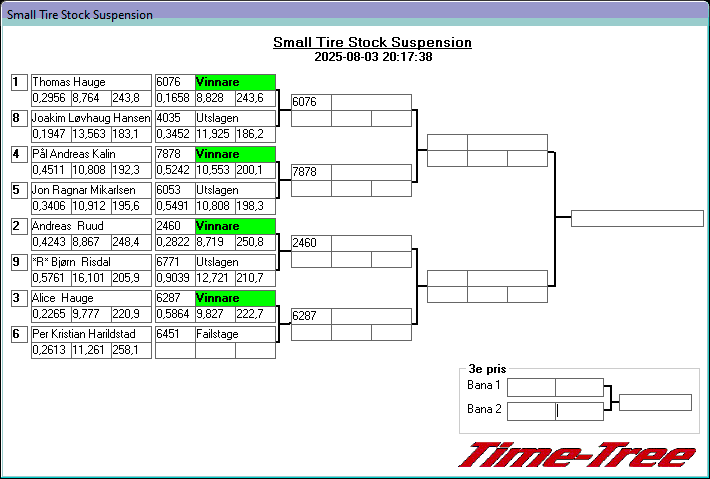 Kvalresultat för Small Tire Stock Suspension