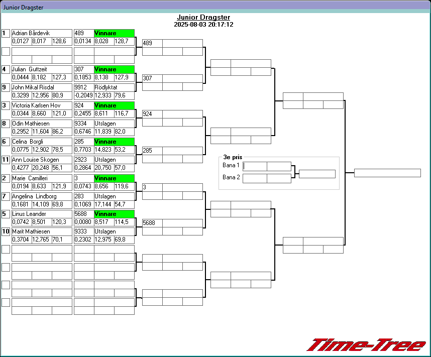 Kvalresultat för Junior Dragster