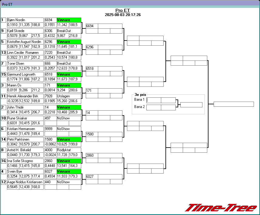 Pos TvlNR Namn Reaktion 60-fot Hast201 Tid201 Hastighet Sluttid Indexdiff Kvaldiff Index